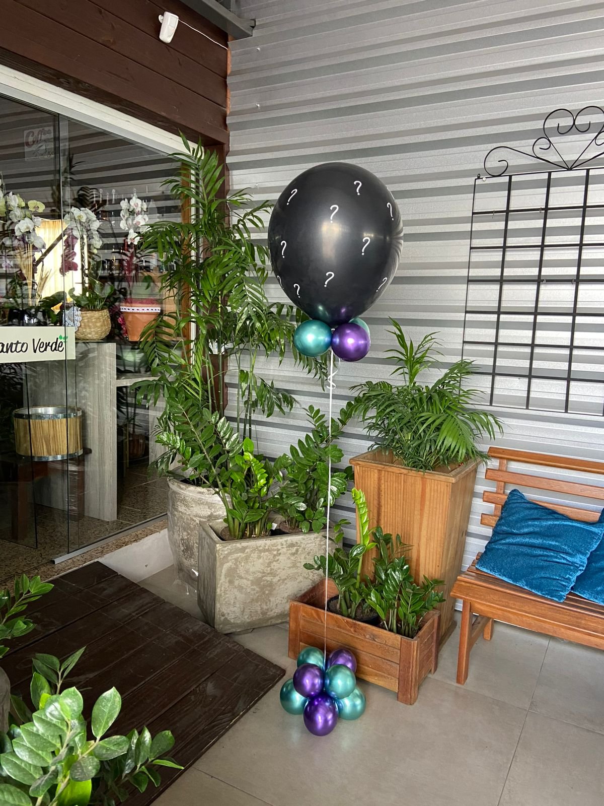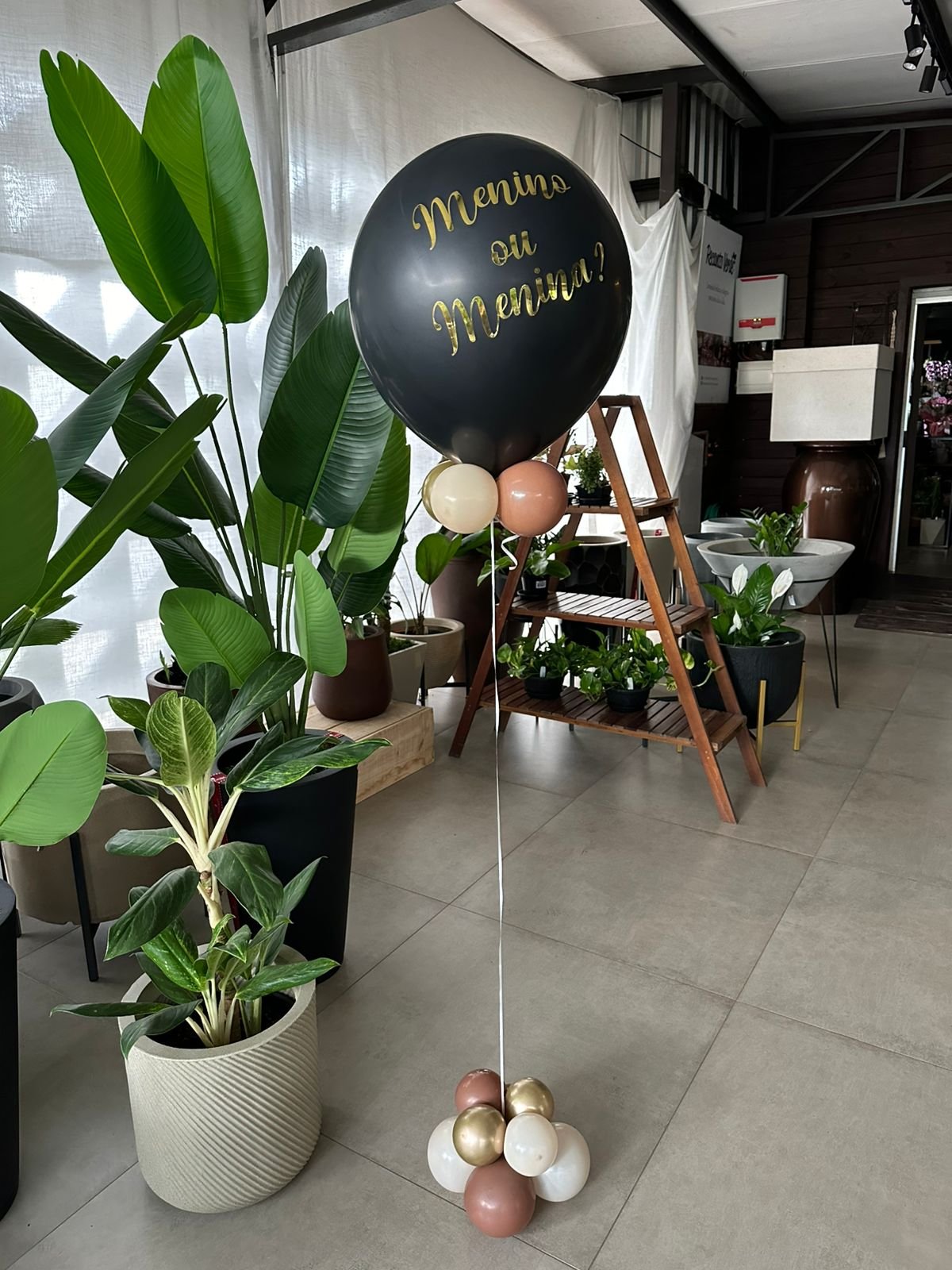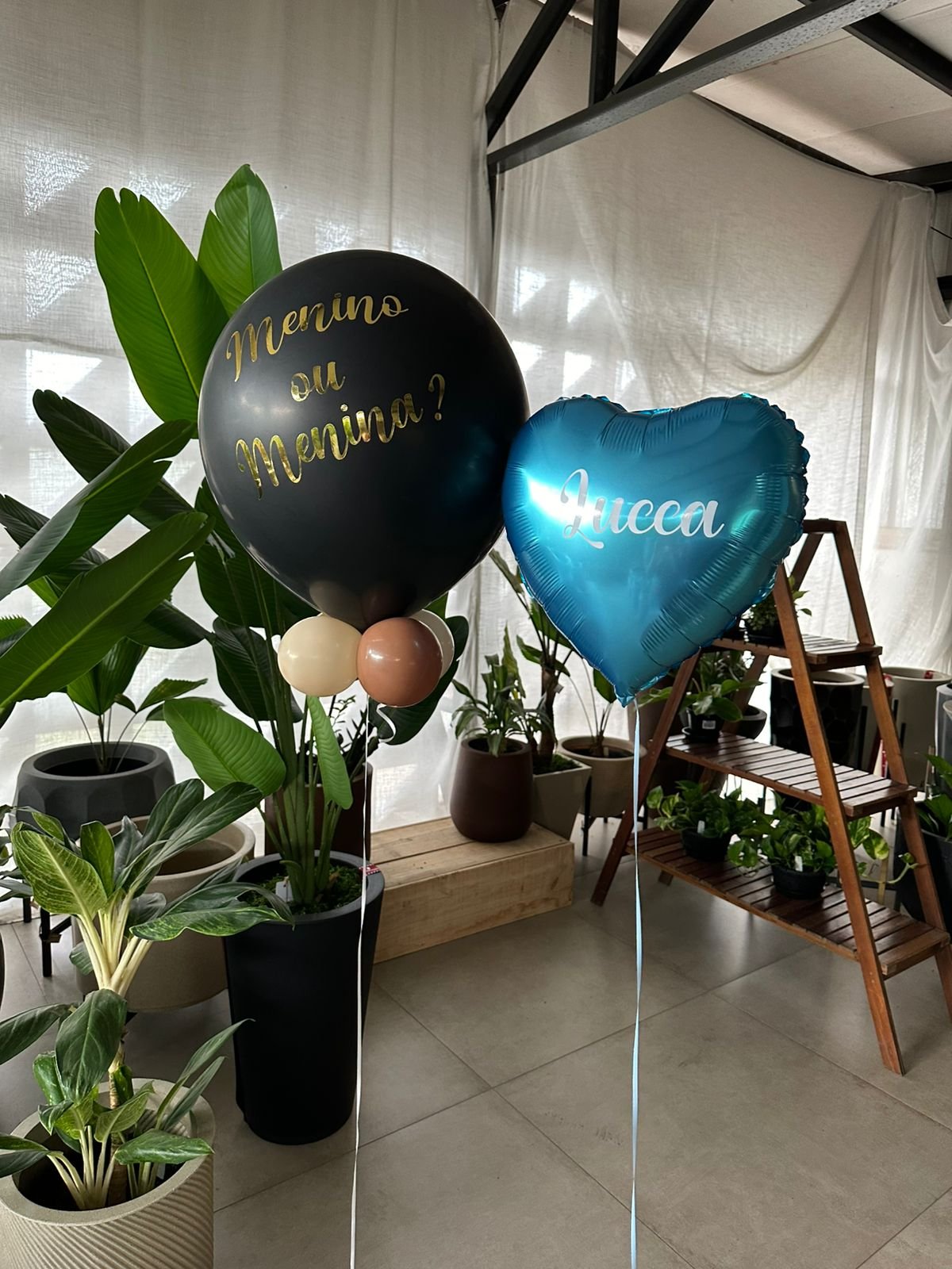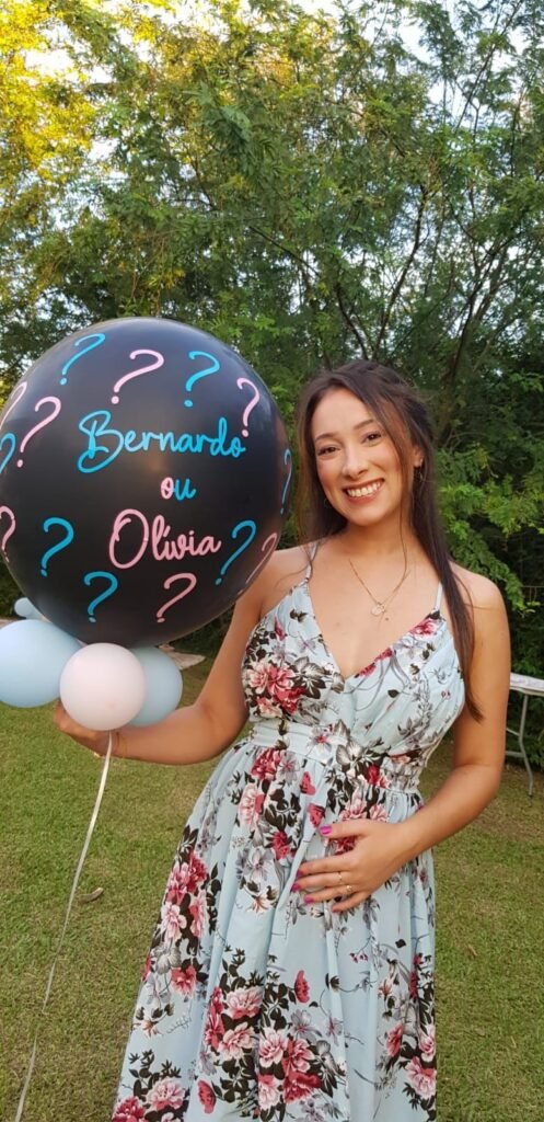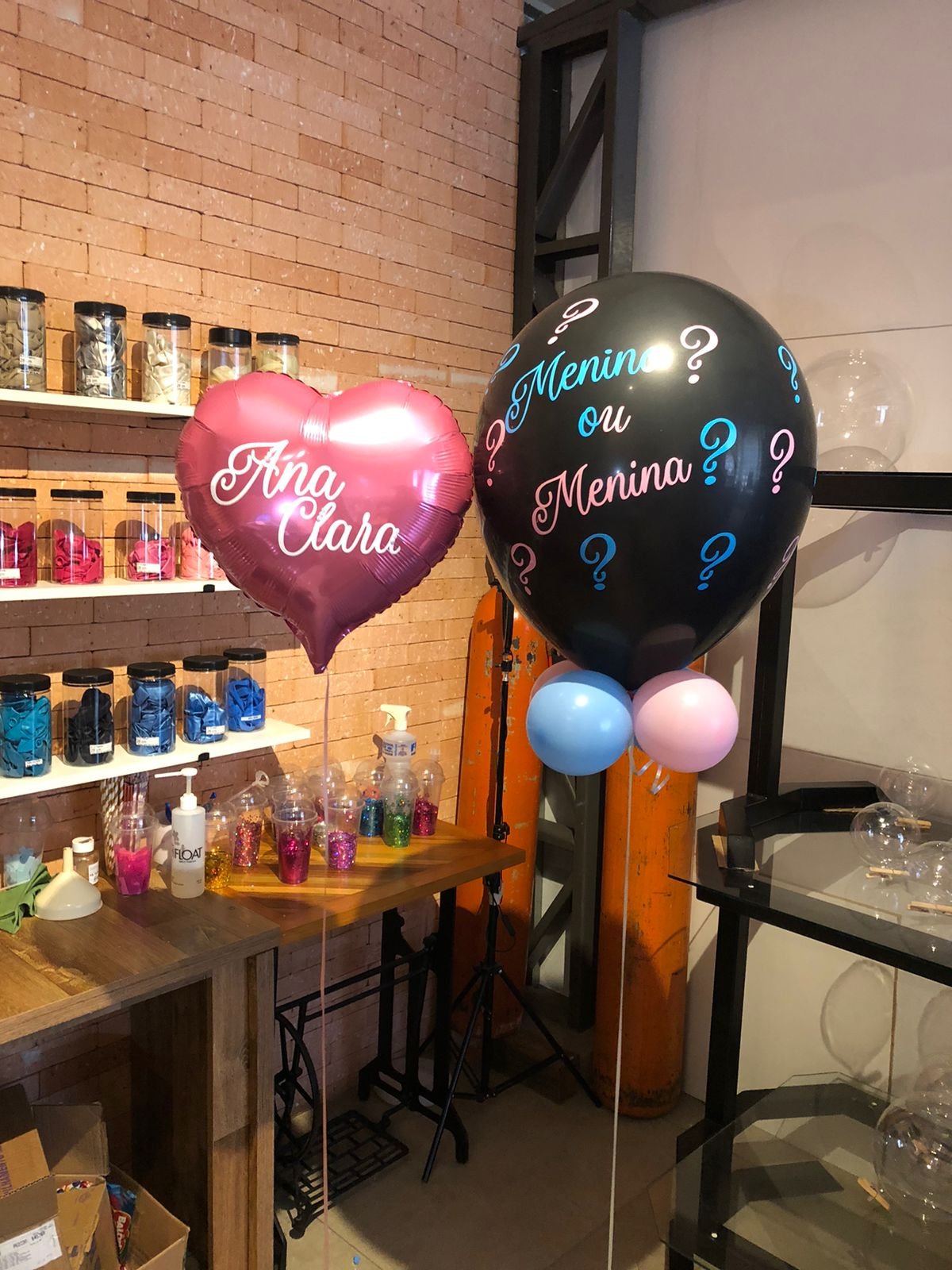 Balão preto revelação em gás hélio com balões e papel picado internos + Base de balões para suporte. Escritas personalizadas