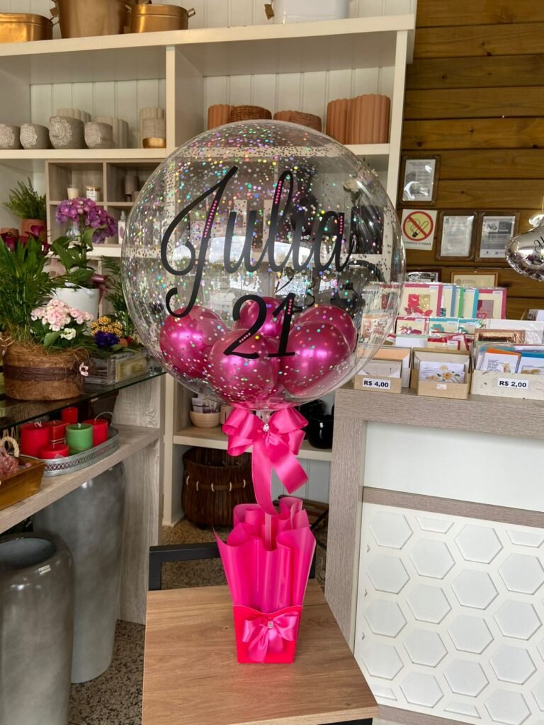 Balão bolha G personalizada com balões internos e confetes + caixa de suporte