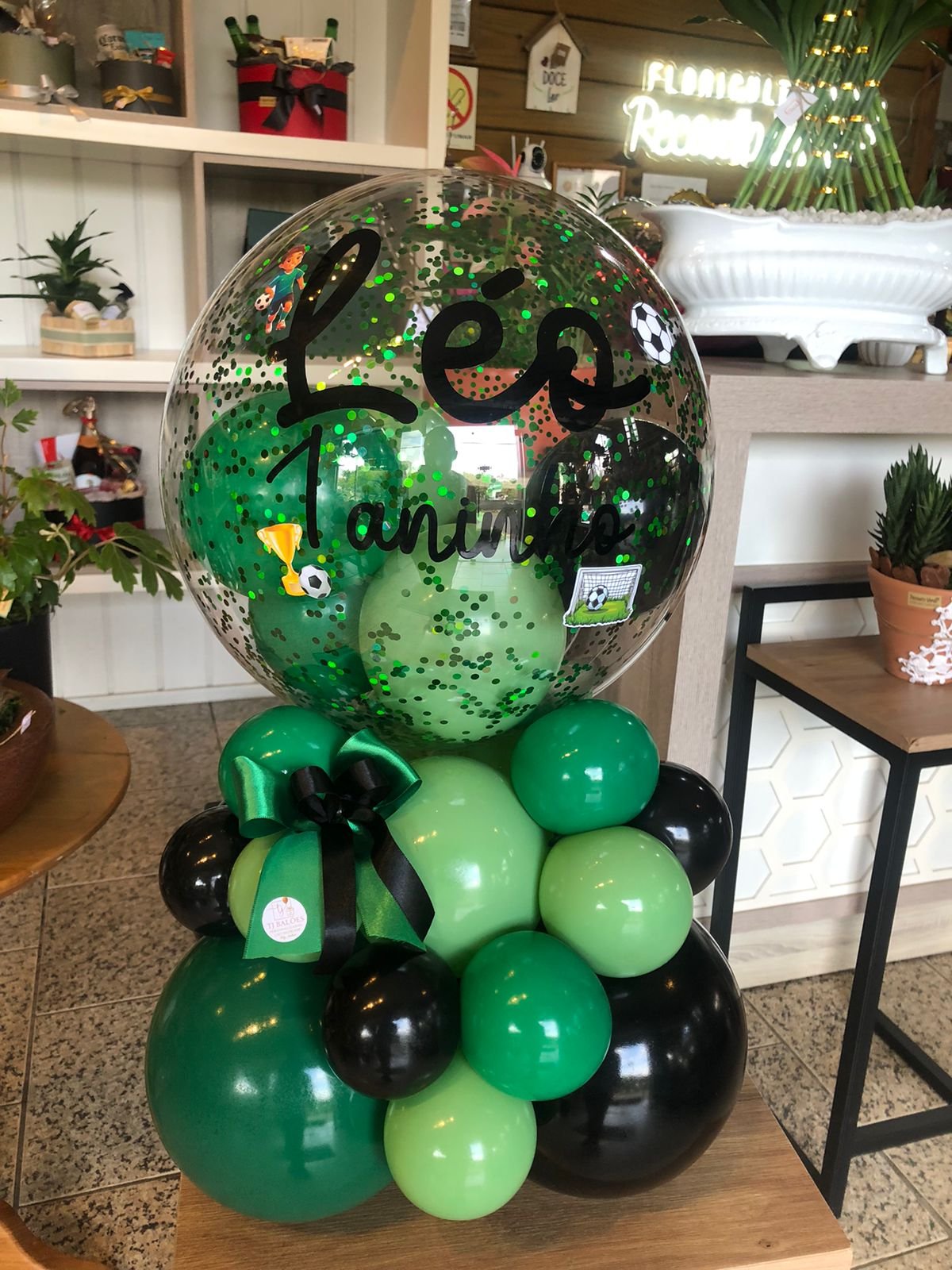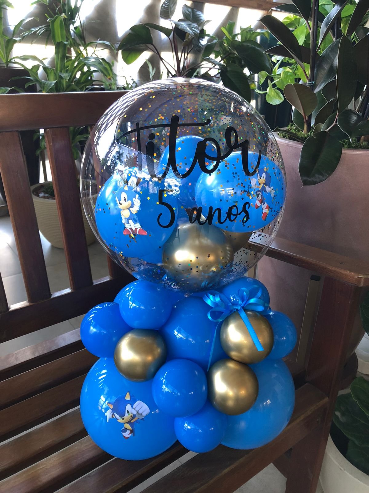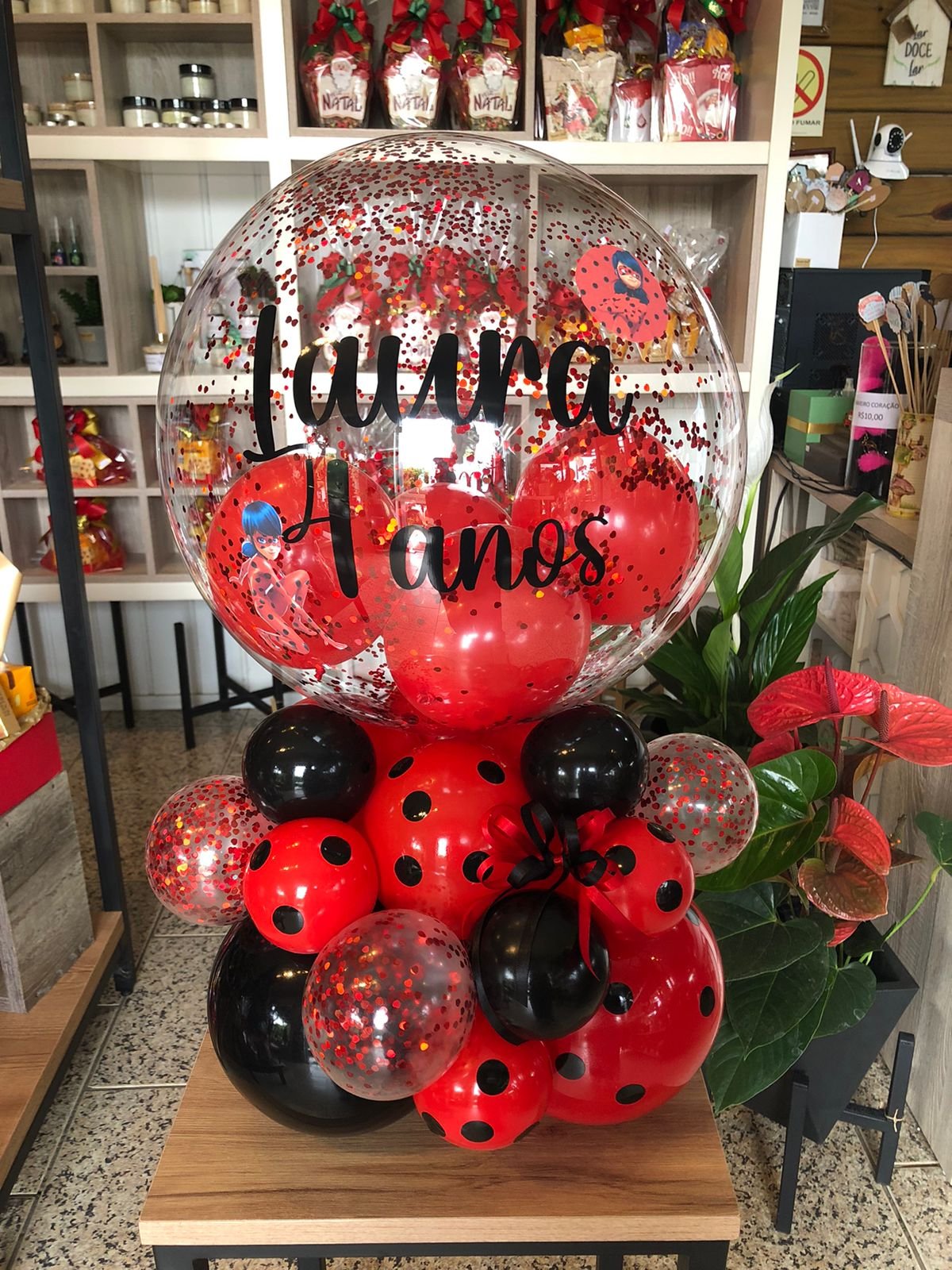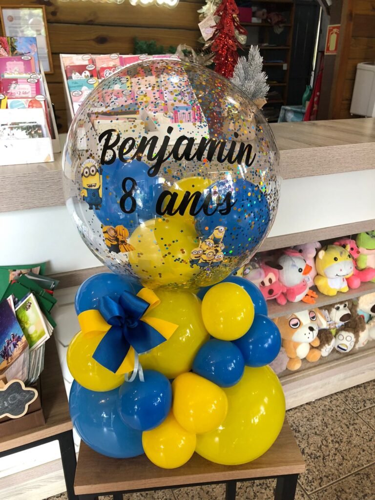 Bolha M personalizada com escrita e desenho de personagem + base de balões orgânica